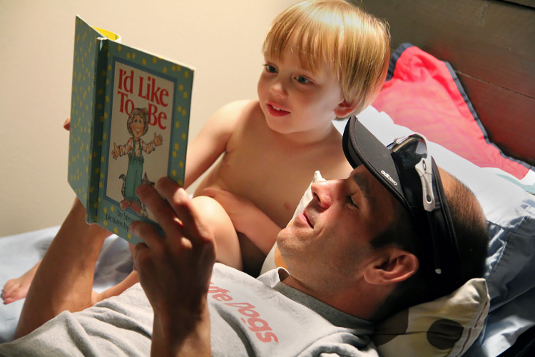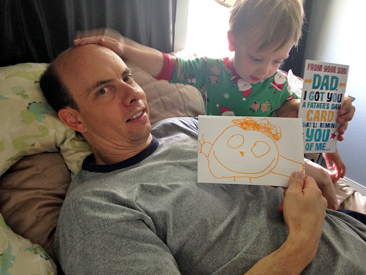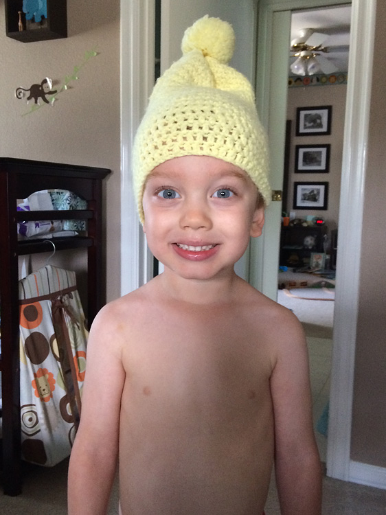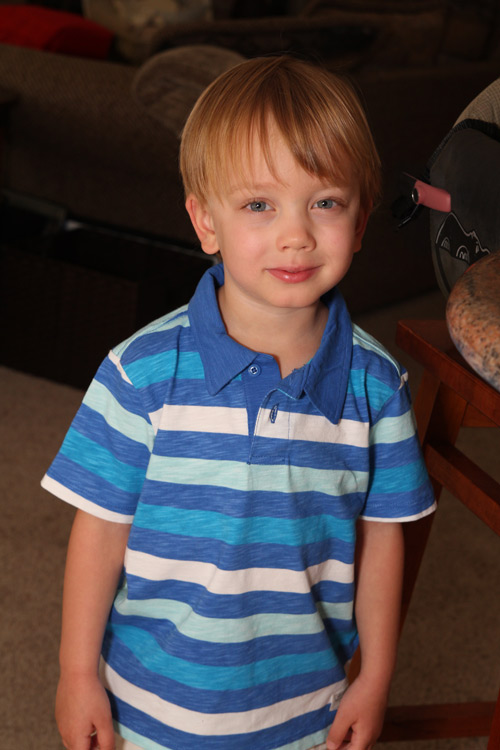 Just before Evan arrived, we helped celebrate the conclusion of Calan’s first year of preschool. He had a fun day, getting to wear pajamas and eating a special pancake morning snack. For a while now, when Calan puts on his pajama bottoms he makes sure they are inside-out. That way the tag can stick out in the rear. He calls this his “tag tail”, and it’s very important it be there. We explained this quickly to his teacher, Mrs. Means, when she noticed this funny style.