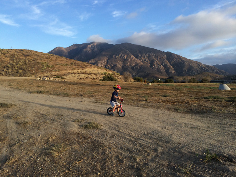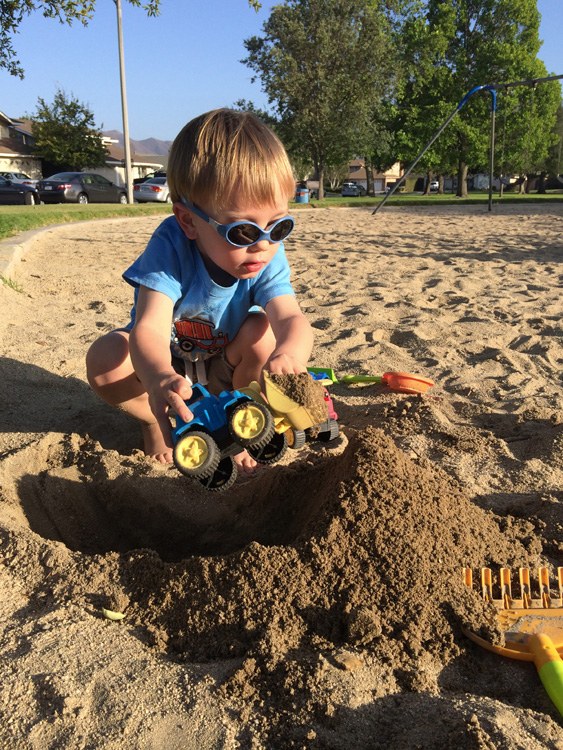 Hiking: Calan has often asked Dada if he could go hiking. He’ll point toward the small mountains near our house and ask which mountain we can climb. Well, we finally went, and to our surprise he raced up the trail as soon as his feet hit the ground. Our first outing took us to a more difficult hillside, with steep inclines that even Dada had to carefully negotiate. That didn’t stop Calan though. He instinctively sunk low to the ground and crawled like a bear up the sharp angles of the rocky trail. When we got to a stopping point, he asked how we were able to get so high. You could tell he was hooked, as he made the connection with climbing up the trail with getting up high and seeing the “ants on the freeway way over there”. Another sign of being hooked was when we got down, he immediately wanted to go back up. We went on a second hike to a spot in Newbury Park where you could do more walking than climbing, and he ran along the path like a cross-country racer. Now, there are two things we need to change as we go forward on these hikes: First, a good pair of hiking shoes. And second, finding a way to keep the flies away. Ultimately, Calan can’t stand the little flies that buzz around your face and ears on the bushy hillsides. Perhaps there is something to repel them during these warm summer hikes (?) so Calan can focus on having fun instead of flapping his arms at the persistent flying creatures when he’s finally had enough of them.
