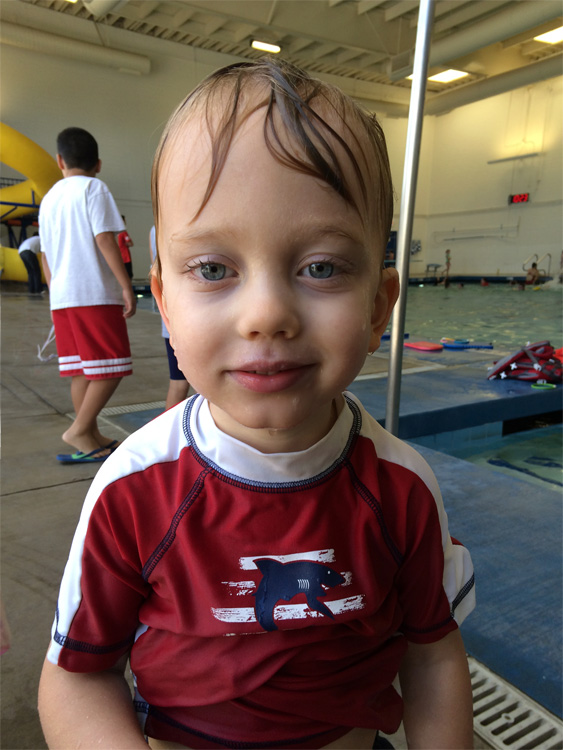 Calan got to meet up with his friend Jacob regularly this month as the two boys both enrolled in group swimming lessons at the Pleasant Valley Aquatic Center. Calan was not always thrilled with getting in the chilly water though. In fact he often told us that “swimming is not my favorite”. He was a good sport though, getting in the water each day and going through the motions. The exception though was when he was asked to swim on his back with the instructor (or, “swimming upside-down” as he calls it). He especially didn’t mind going to swimming because many days he got to play in the park with Jake and/or be treated to chicken nuggets on the way home. While he’s still not very comfortable with the water and didn’t officially pass his class (lol), it was still good to see him get a little more accepting of it after the two-weeks.