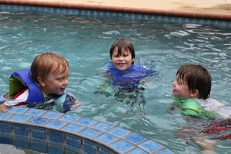 Spending time with friends: Socially, Calan continues to get more comfortable with his peers. We have consistently hung out with neighbors and have hosted small pool parties with friends at least once a week. Summer is so great for this. Along with other play dates here and there,  it’s been fun to watch Calan interact and just be a “kid” with friends. Since most of the neighbors are older, these friends are anywhere from 3 to 9 years old. While he gets a long with them all, he usually does the best with kids a couple years older than he is. He always looks forward to going outside and joining them for bike rides, swimming, games and general kid craziness whenever possible. This is something that wasn’t always easy for him when he was younger, so we’re glad he’s having fun.