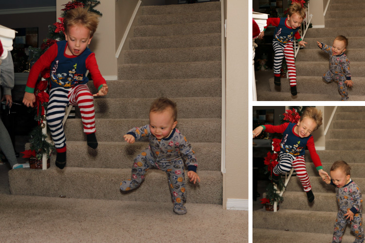 Evan is also getting faster and faster when he runs. He’s also figured out out to walk up stairs while holding onto a railing. It’s also been fun watching him respond to requests such as “go get your milk” or another item you might not think he understands. His favorite activity to do upon verbal prompt is “brushing teeth”. For whatever reason, he loves to hold his toothbrush and chomp down on it. At first, we thought it was teething but he actually gets the brush going in motion, as if he’s brushing. A good habit to learn early!