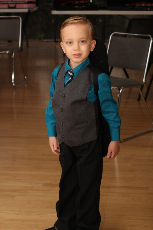 Calan worked harder than ever this fall practicing violin, going to lessons and classes with the group from Ms. Diana’s studio. The dedication paid off as he was able to play in his first recital.Looking sharp in his new suit, he